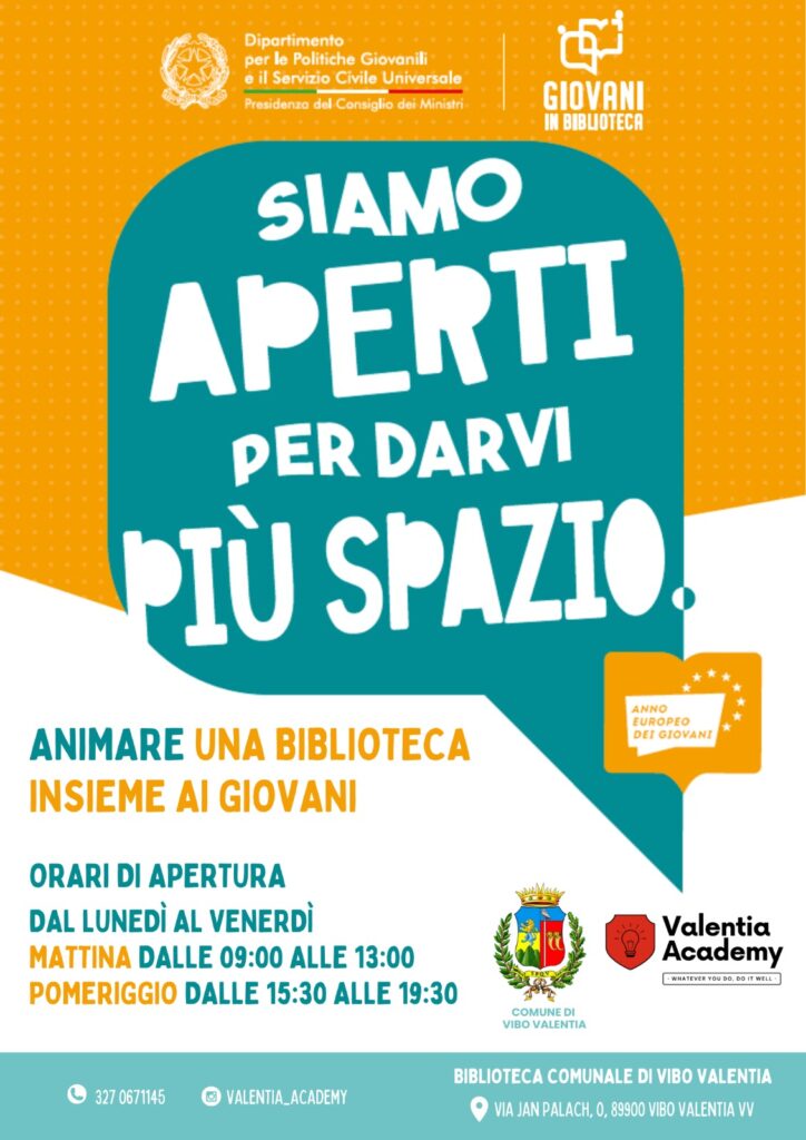 «Lo avevamo promesso, lo avevamo annunciato ed oggi, terminata la fase organizzativa, passiamo dalle parole ai fatti. La biblioteca comunale di Vibo Valentia è pronta a vivere una nuova bellissima stagione di cultura, ricca di tante iniziative destinate ai giovani e non solo». È quanto dichiara l’assessore alla Cultura del Comune di Vibo Valentia, Stefano Soriano, nell’annunciare che sta per entrare nel vivo il progetto nato dal bando ministeriale “Giovani in biblioteca”, cui il Comune ha partecipato insieme all’associazione Valentia Academy. Grazie a questo progetto, fino al settembre 2025 la sede di via Palach diventerà un grande laboratorio di lettura, sapere e sperimentazione. La prima novità è rappresentata dall’ampliamento dell’orario di apertura. Da questa settimana, infatti, l’orario è il seguente: dal lunedì al venerdì dalle ore 9 alle ore 13, «e soprattutto – spiegano Soriano -, a differenza del passato, tutti i pomeriggi dalle ore 15.30 alle ore 19.30. Ciò garantirà ai tanti giovani di poter fruire della sala studio attrezzata per un orario molto più ampio e per tutta la settimana». Presto prenderanno il via i laboratori, da quello di disegno a quello di astronomia fino a quello di fotografia, per bambini, ragazzi ed anche adulti fino a 35 anni, i cui dettagli verranno comunicati a breve. Ma si tratta soltanto dei primi laboratori, perché ne verranno altri per andare incontro ai gusti di tutti.