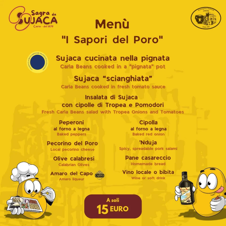 E’ dedicata al prodotto tipico cariese “a sujaca” (i fagioli che vengono coltivati sull’altopiano del Poro) cucinata secondo una tradizionale e antica ricetta cariese che rende il prodotto squisito, unico ed inimitabile. E’ una delle sagre più longeve, frequentate apprezzate e conosciute dell’intera provincia vibonese e ormai dell’intera regione.