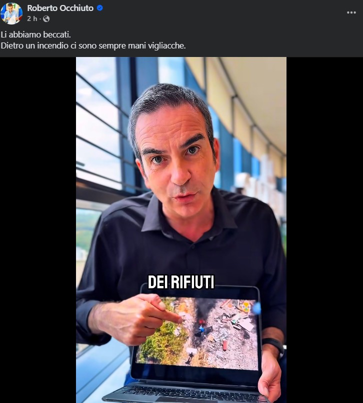 «Guardate questi due: cosa stanno facendo? Hanno scaricato dei rifiuti, li hanno bruciati, hanno fatto un rogo». Con queste parole Occhiuto commenta il video che mostra il momento dell’illecito. I responsabili sono stati arrestati dalla Polizia e sottoposti a processo per direttissima. A rendere possibile l’intervento tempestivo è stato il sistema di sorveglianza attivato dalla Regione, che ogni giorno impiega 25 droni per monitorare oltre 1.500 km di territorio calabrese. Solo nel mese di luglio, i droni hanno coperto più di 40.000 km in totale. «Sono immagini realizzate dai nostri dipendenti regionali – spiega Occhiuto – con i droni che utilizziamo per il monitoraggio continuo del territorio. È un sistema che non esisteva in Calabria fino a quattro anni fa e che oggi ci invidiano in tutta Italia e anche in Europa».