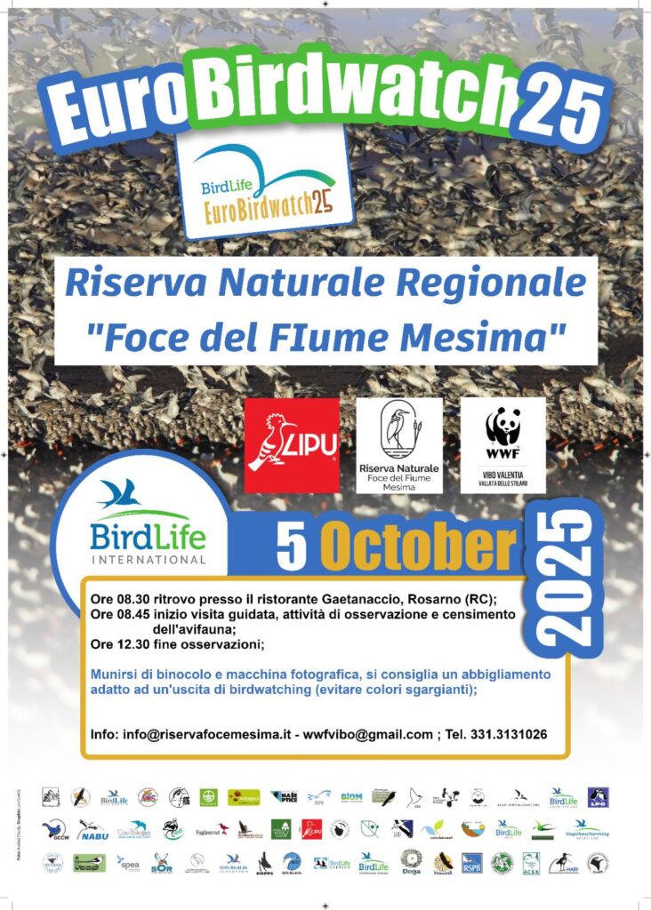 La Riserva Naturale Regionale “Foce del Fiume Mesima” torna a essere protagonista con l’EuroBirdwatch 2025, la più importante kermesse di osservazione degli uccelli a livello europeo, giunta alla 33esima edizione e organizzata in Italia dalla Lipu (BirdLife Europa).