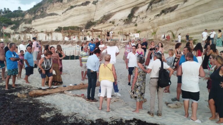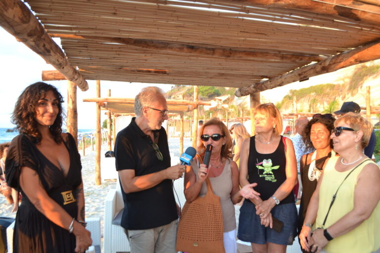 Si è svolta sulla spiaggia di Riaci, presso il Villaggio “Marco Polo” di S. Domenica di Ricadi, l’iniziativa di Legambiente dal titolo “L’eleganza che protegge il mare”, evento all’insegna della bellezza e della sostenibilità ambientale che ha visto come protagonista il maestro Gerardo Sacco e le sue opere. L’appuntamento, organizzato e promosso dal Circolo Legambiente Ricadi, da Legambiente Calabria e dal progetto europeo Life Turtelnest con il supporto del Villaggio “Marco Polo”, ha registrato una numerosa partecipazione.