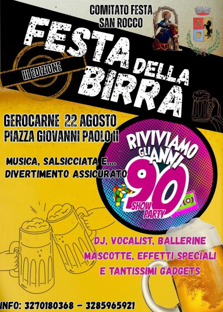 La prima serata, venerdì 22 agosto alle 20:30, sarà all’insegna del divertimento con la terza edizione della “Festa della birra“, accompagnata dallo show musicale “Riviviamo gli anni ’90“, che riporterà i partecipanti indietro nel tempo. La serata sarà arricchita da una salsicciata per celebrare al meglio l’evento.