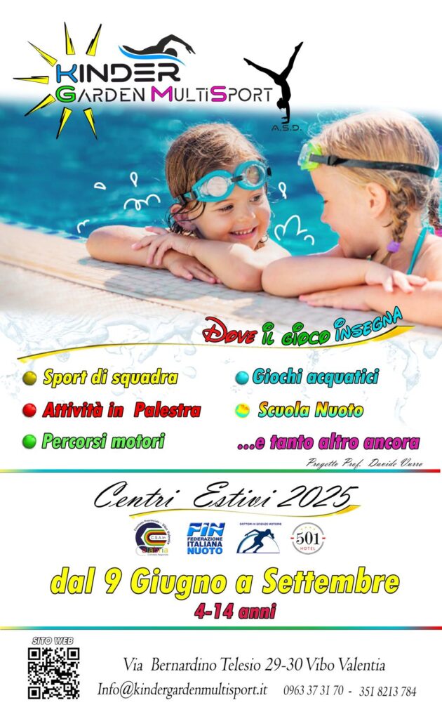 Anche quest’anno, a grande richiesta, torna uno degli appuntamenti estivi più attesi per bambini e famiglie vibonesi: il Campus Estivo Multisportivo Educativo dell’ASD Kinder Garden Multisport, giunto con orgoglio alla sua dodicesima edizione. Un punto di riferimento per l’intera provincia di Vibo Valentia e comuni limitrofi, che da anni offre un servizio educativo e ricreativo di alta qualità durante la pausa scolastica.
