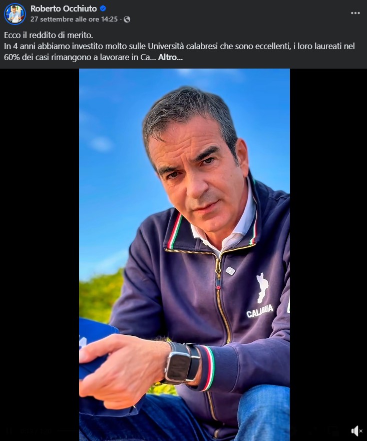 Il presidente uscente della Regione Calabria, Roberto Occhiuto, e candidato del centrodestra alle prossime elezioni regionali del 5 e 6 ottobre, ha annunciato una nuova misura per i giovani: il “reddito di merito”, un incentivo economico di 500 euro al mese destinato agli studenti che sceglieranno di iscriversi a una delle università calabresi.