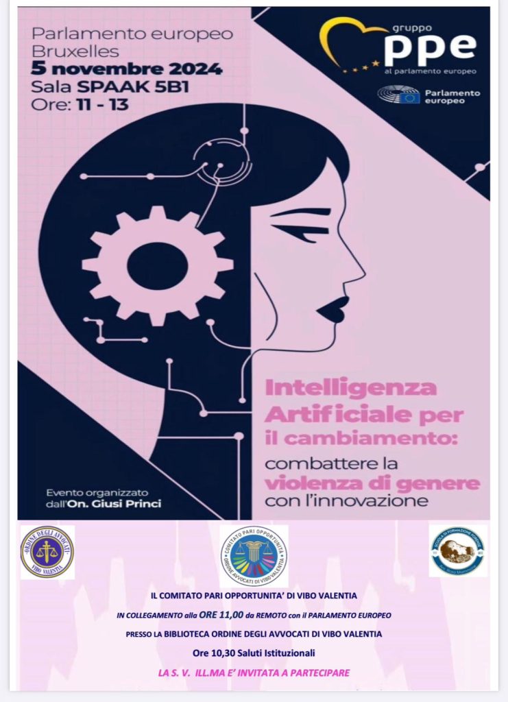 «Domani, 5 novembre – si legge in una nota – , nella Biblioteca dell’Ordine, si effettuerà il collegamento da remoto con il Parlamento Europeo, grazie all’interessamento del consigliere regionale Michele Comito per il tramite dell’Europarlamentare Giusi Princi, organizzatrice dell’evento la quale ha accolto con grande entusiasmo la richiesta rendendosi disponibile a creare un link di collegamento con il Parlamento Europeo in Italia. Il titolo “Intelligenza Artificiale per il cambiamento: combattere la violenza di genere con l’innovazione”, dalle 11alle 13, nella sala Spaak 5B1 del Parlamento europeo, si discuterà delle sfide e delle opportunità dell’AI nel prevenire e contrastare la violenza di genere. L’evento, in collaborazione con il Parlamento europeo in Italia, vuole mettere in luce una lacuna normativa importante: attualmente l’Unione Europea non dispone di una legislazione specifica che disciplini l’uso dell’AI per combattere la violenza di genere. Obiettivo dell’incontro è gettare le basi per una proposta che possa colmare questo vuoto, creando un quadro normativo in grado di tutelare le vittime e garantire un utilizzo etico e sicuro delle nuove tecnologie».
