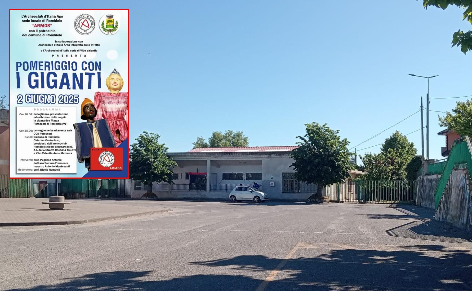 Il raduno partirà ufficialmente alle ore 16:00 da Piazza don Mazza, con l’accoglienza e con la presentazione di tutte le coppie di giganti che hanno aderito all’appuntamento. Subito dopo, ogni coppia di giganti inizierà ad esibirsi a turno nella piazza. Come se non bastasse, a partire dalle ore 18:00, inizierà un convegno nella sala dell’auditorium Ccs di Pernocari. Il convegno sarà introdotto dai saluti del sindaco di Rombiolo Caterina Contartese e anche dagli interventi di Nicola Mandaradoni (presidente Archeoclub d’Italia “Armos” Rombiolo), di Rosanna Trovato (presidente Archeoclub d’Italia – Area Integrata dello Stretto) e di Anna Murmura (presidente Archeoclub d’Italia Vibo Valentia). Il convegno avrà come moderatore Nicola Rombolà e includerà gli interventi di Antonio Pugliese, di Francesca Santoro e del maestro Antonio Montesanti.