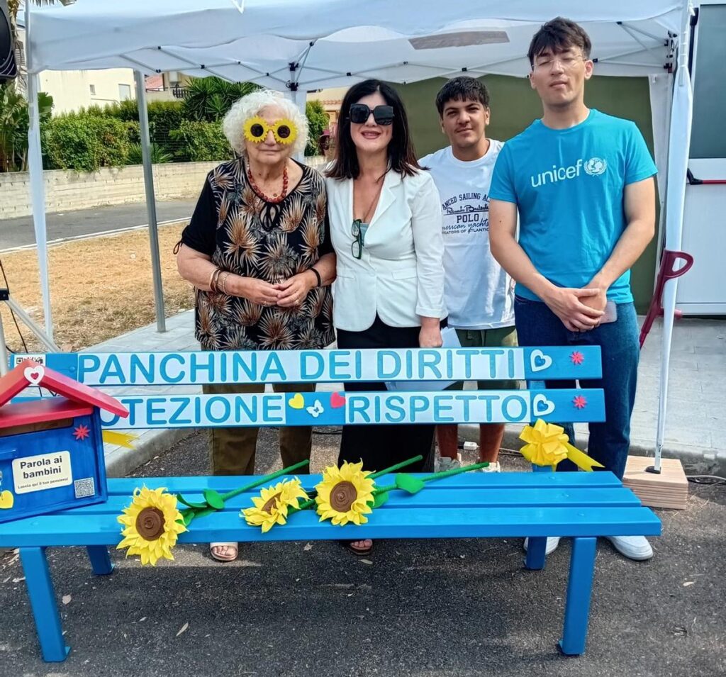 Tiziana Ceravolo ha proseguito: «Grazie alle donazioni dell’azienda Sardanelli e all’operato artistico di Caterina Rizzo, l’aver inaugurato (assieme al garante regionale per l’infanzia e l’adolescenza) la prima panchina regionale dei diritti dei bambini con Qr code, che riporta alla Convenzione Onu sui diritti dell’infanzia, costituisce un punto fermo per noi imprescindibile, così come parimenti lo è l’aver adibito una cassettina postale, in cui i giovanissimi sono invitati a porre le istanze e le richieste di ciò che desiderano si realizzi nella loro città».