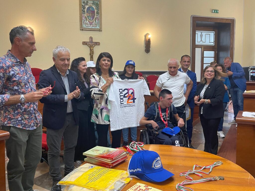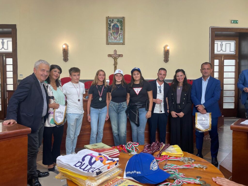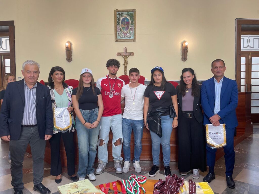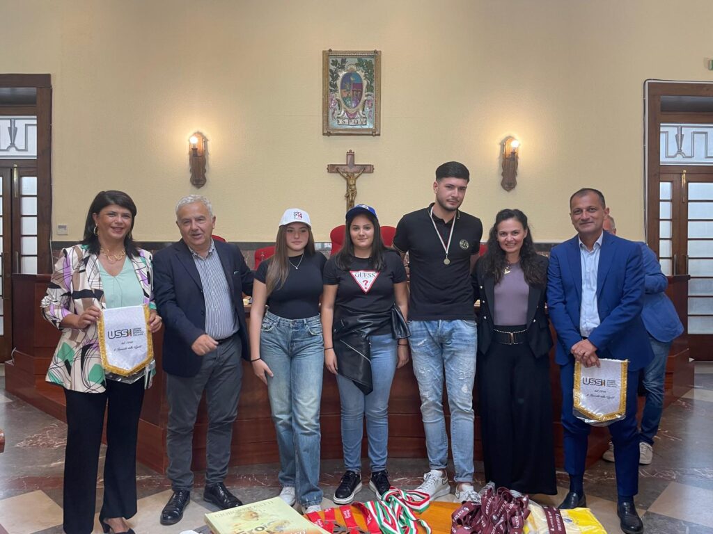 Gli studenti accompagnati dalla dirigente del liceo scientifico “Berto” Licia Bevilacqua. Ad accoglierli il sindaco Enzo Romeo e l’assessore allo Sport Stefano Soriano