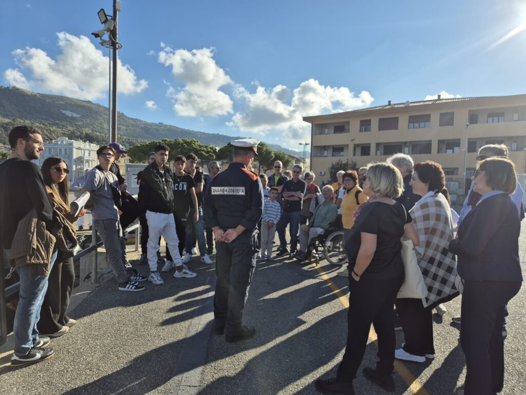 L’apertura della Capitaneria di Porto, essenziale presidio tecnico per la gestione della costa vibonese, ha rappresentato un’occasione unica per onorare il mare e chi lo tutela ogni giorno. I partecipanti hanno potuto, quindi, accedere eccezionalmente agli spazi operativi della Capitaneria, la zona comandi che è il cuore operativo per la sicurezza della navigazione e la tutela dell’ambiente marino. Momento culminante è stato l’incontro con la Guardia Costiera in azione, con la presentazione della motovedetta e l’illustrazione dettagliata delle attività quotidiane svolte per la tutela del mare e la sicurezza. Il percorso si è concluso con una suggestiva passeggiata sul molo.