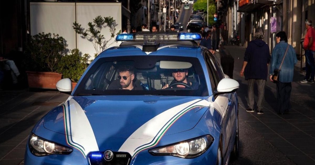 Una pattuglia della Polizia su corso Vittorio Emanuele III a Vibo Valentia