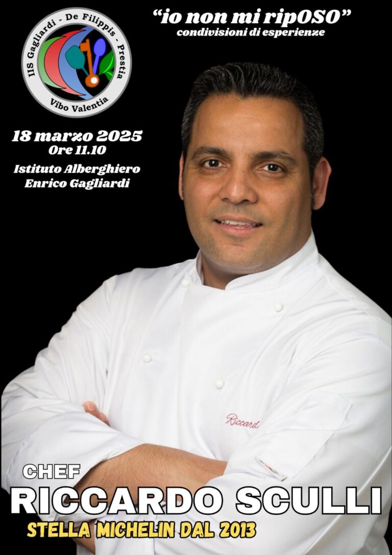 Il 18 marzo è la volta di un altro grande chef calabrese anch’egli Stella Michelin 2025: Riccardo Sculli. Anche lo chef del Gambero Rosso di Gioiosa ha dato sin da subito la sua adesione al progetto. Anche lui racconterà agli alunni la propria storia lavorativa.