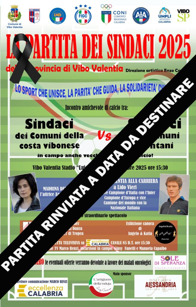 «Per il profondo dolore della prematura scomparsa del piccolo Francesco, la “Partita dei sindaci” 2025 in programma il 14 settembre è stata rinviata. Io, gli organizzatori e tutti i sindaci della provincia di Vibo Valentia esprimiamo la nostra più profonda vicinanza alla famiglia di Francesco».