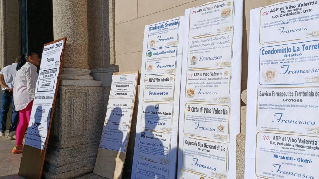 Una comunità intera si è stretta nel dolore questo pomeriggio durante i funerali del piccolo Francesco, il bambino di appena tre anni scomparso tragicamente nei giorni scorsi all’ospedale “Bambin Gesù” di Roma. Qui era stato trasferito d’urgenza dall’ospedale “Jazzolino” di Vibo Valentia (dove era stato sottoposto a un delicato intervento chirurgico finalizzato a fermare l’emorragia) con un aereo militare, dopo essere stato colpito e schiacciato da una trave mentre giocava all’interno del Parco Urbano del capoluogo.