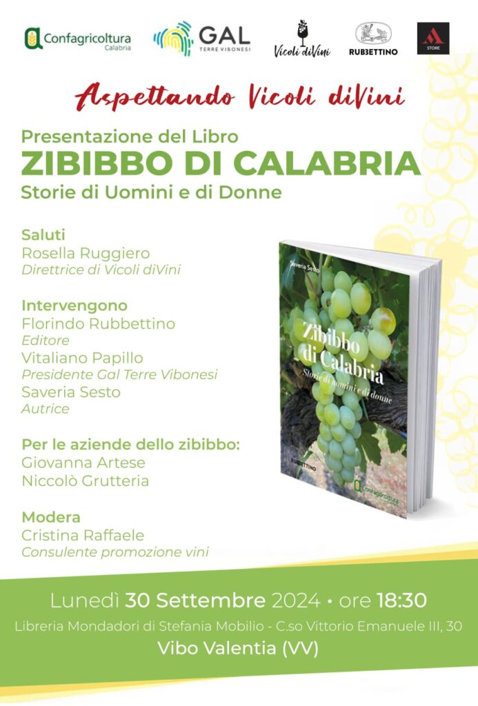 Un libro per conoscere la storia dello zibibbo in Calabria attraverso uomini e donne, perché il cibo è lo specchio sincero di un territorio, di una società. Il modo di lavorare e trasformare le materie prime riflettono spesso il pensiero sociale, antropologico ed economico di una comunità. Domani, 30 settembre, alle 18.30, presso la Mondadori di Vibo Valentia si terrà la presentazione del libro “Zibibbo in Calabria Storie di Uomini e Donne”, scritto da Saveria Sesto, edito da Rubbettino, sarà una degna anteprima della manifestazione in programma il prossimo 4 ottobre, Vicoli diVini. E a porgere i saluti istituzionali sarà proprio Rossella Ruggiero, direttrice di Vicoli di Vini. Interverranno: l’editore, Florindo Rubbettino; il presidente del Gal Terre Vibonesi, Vitaliano Papillo; l’autrice, Saveria Sesto. Modererà l’evento Cristina Raffaele, consulente promozione vini. A rappresentare le aziende di zibibbo saranno: Giovanna Artese e Niccolò Grutteria. Appuntamento, dunque, a domani.