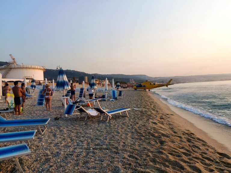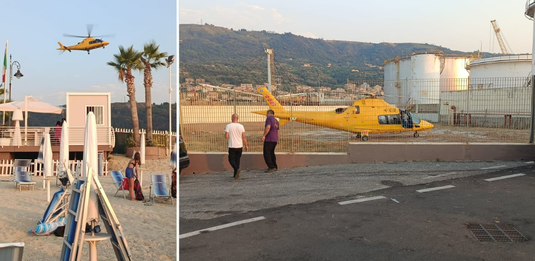 I bagnanti sono stati fatti sgomberare dalla Guardia costiera per consentire all’elicottero, proveniente da Lamezia Terme, di atterrare in sicurezza sulla spiaggia e lasciare i medici, in modo tale da garantire un soccorso tempestivo. Successivamente questo è risalito in volo e si è posizionato sulla piazzola del parcheggio, nei pressi dello stabilimento. Nel frattempo anche il mezzo del 118 ha raggiunto il posto, al fine di trasportare la signora sul velivolo.
