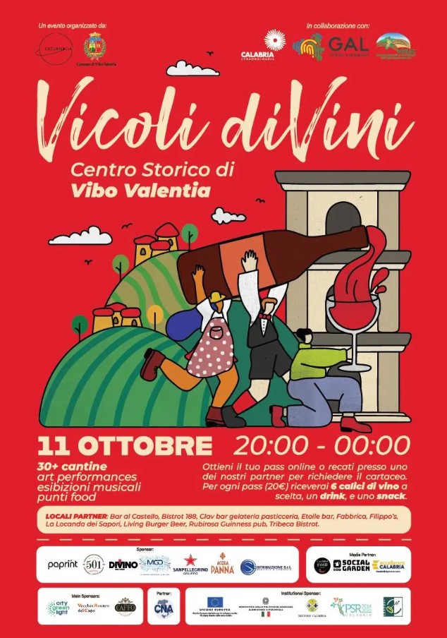 Un brindisi collettivo al vino calabrese, tra assaggi, degustazioni, musica dal vivo, artisti di strada, e un contesto scenografico straordinario nel cuore di Vibo Valentia. Cresce l’attesta per la nona edizione di Vicoli diVini, l’evento itinerante organizzato dall’associazione Saturnalia e dal comune di Vibo Valentia con il sostegno del Gal Terre Vibonesi, di Regione Calabria e Arsac, che vedrà la partecipazione di 35 cantine regionali.